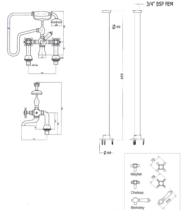 Gentry Home Berkeley bateria wannowa wolnostojąca chrom 8366