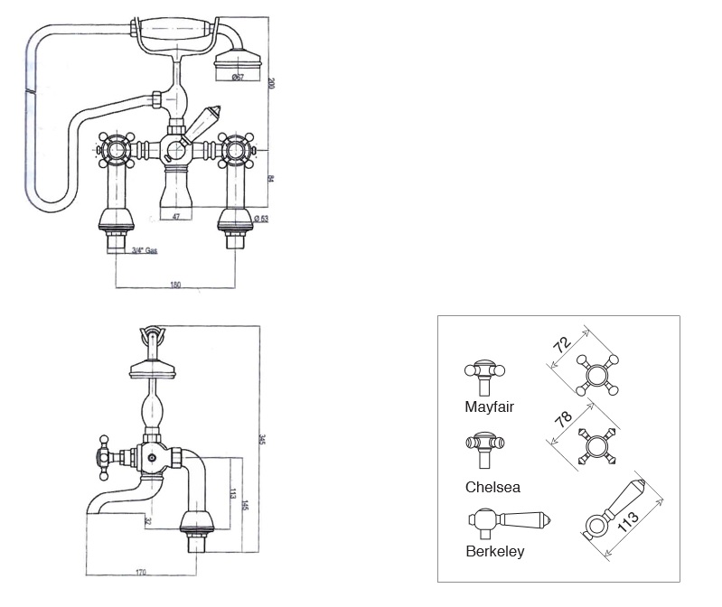 Gentry Home Berkeley bateria wannowa sztorcowa chrom 8362