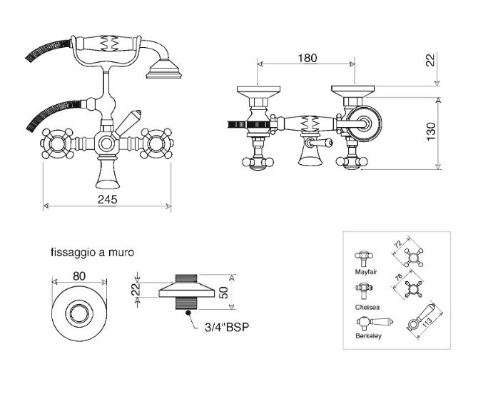 Gentry Home Berkeley bateria wannowa ścienna chrom 8360