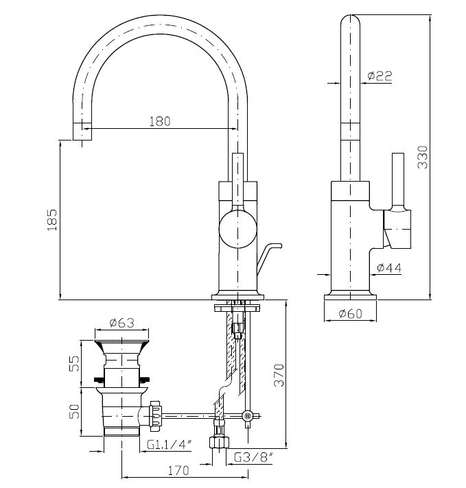 Długość wylewki: 180 mm