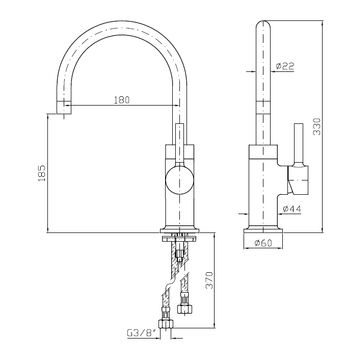Długość wylewki: 180 mm