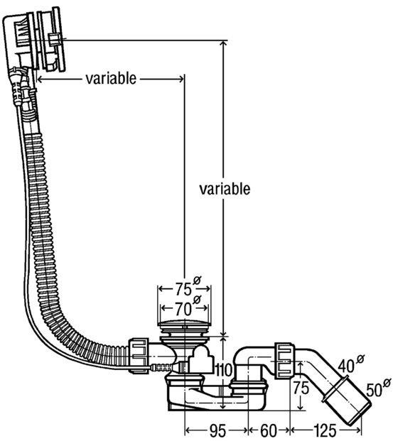 Komplet odpływowo-przelewowy także do wanien z odpływem pośrodku