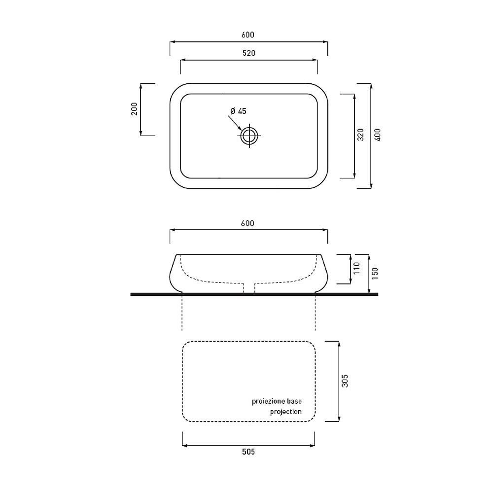 Umywalka bez otworu na baterię, bez przelewu