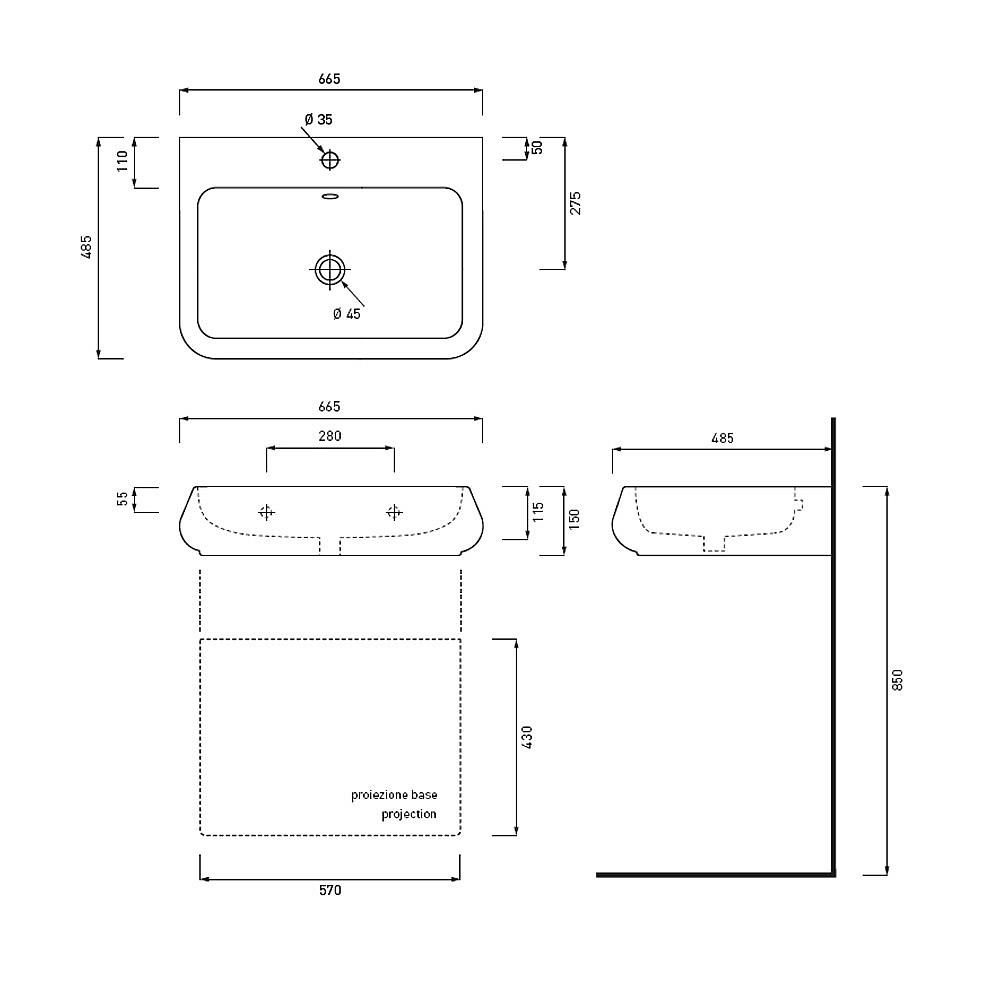 Cielo Shui Umywalka ścienna/nablatowa 66x48 cm biała SHLS66