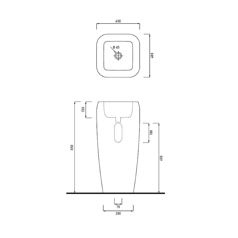 Cielo Shui Umywalka stojąca przyścienna 40x40x85h cm biała SHFREEP