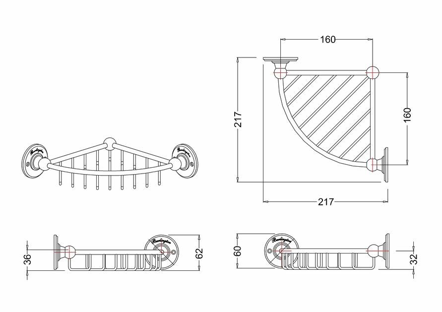 Burlington Koszyk narożny głębokość 36 mm Złoto A21GOL WYPRZEDAŻ KOLORU!!