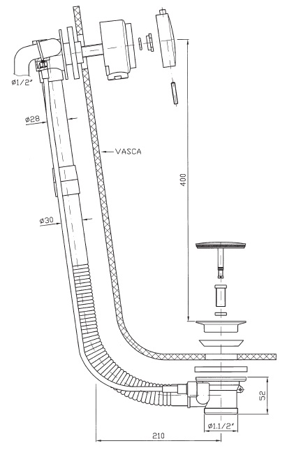 Zucchetti Wannowy System odpływowy chrom Z90075