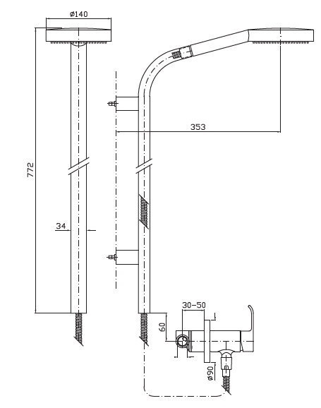 Zucchetti Drążek do słuchawki natryskowej chrom Z93118
