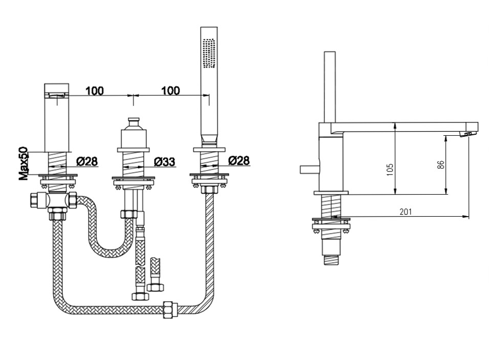 KOHLMAN BOXINE Bateria wannowa trzyotworowa QB241B