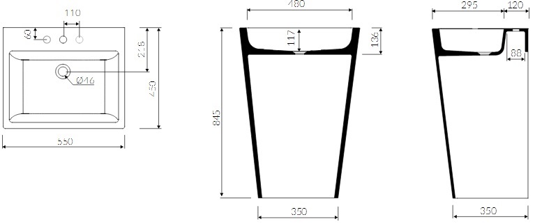 Istnieje możliwość zamówienia umywalki z jedną lub dwiema półkami (jak na zdjęciu) - krótką lub długą, w różnej konfiguracji. Informacje dostępne u obsługi sklepu.