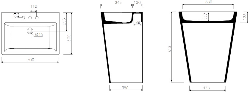 Marmorin Tebe 700 Umywalka stojąco-przyścianna biała P 530 070 020 01 0