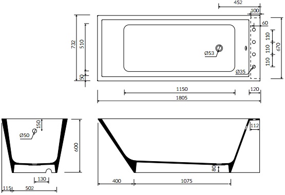Marmorin Tebe II Wanna dościenna biała P 531 180 020 01 0 / P531180020010