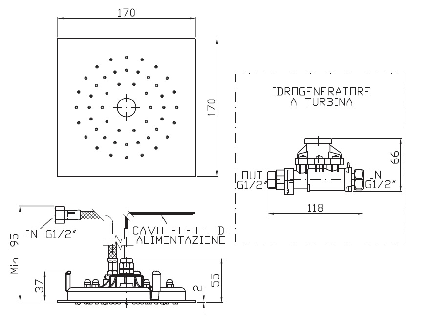 Ze stali nierdzewnej, podtynkowa ze światłem centralnym LED, samozasilająca, brak konieczności podłączenia