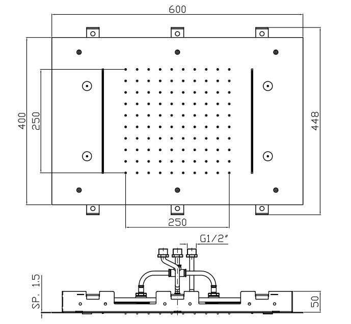Deszczownia ze stali nierdzewnej do montażu na suficie.