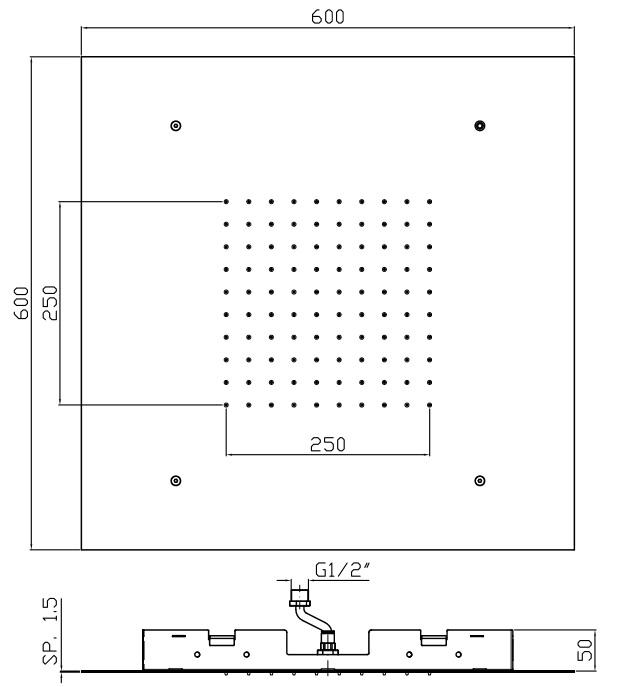 Zucchetti Deszczownica kwadratowa 600x600 mm sufitowa chrom Z94228