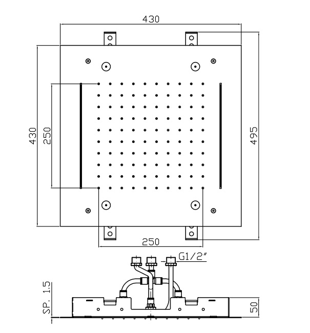 Deszczownia ze stali nierdzewnej do montażu na suficie.