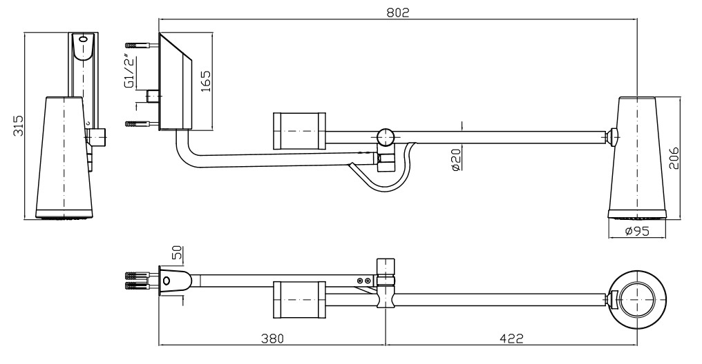 Głowica z jednym ramieniem poziomym z przegubem połączonym z głowicą natryskową