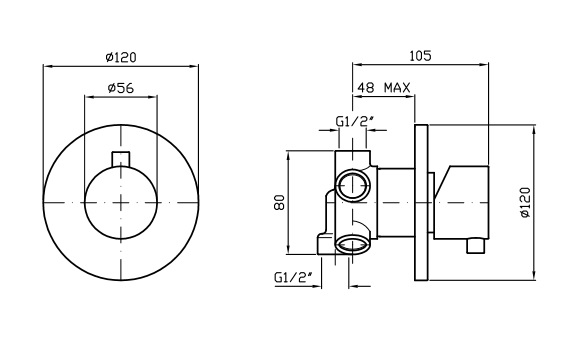 5-drogowy przełącznik z regulacją przepływu wody do baterii podtynkowych, wyjścia ½