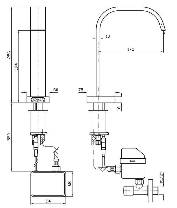 Bateria umywalkowa elektroniczna. Sugerowany zawór termostatyczny do regulacji temperatury