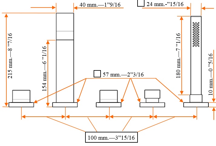 Zucchetti Aguablu Bateria Wannowa 5-otworowa do Montażu na Brzeg Wanny ZA5475