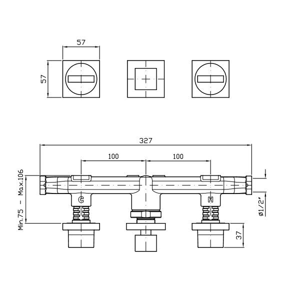 3-otworowa bateria wannowo-natryskowa podtynkowa z przełącznikiem 2-drogowym