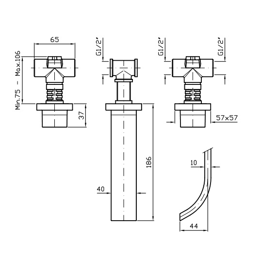 3-otworowa bateria umywalkowa naścienna podtynkowa