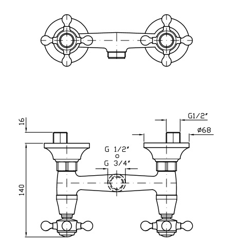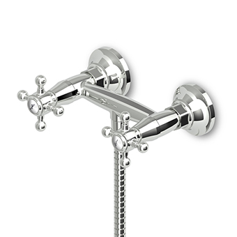 Bateria natryskowa naścienna z wyjściem ¾”, i reduktorem ½”.