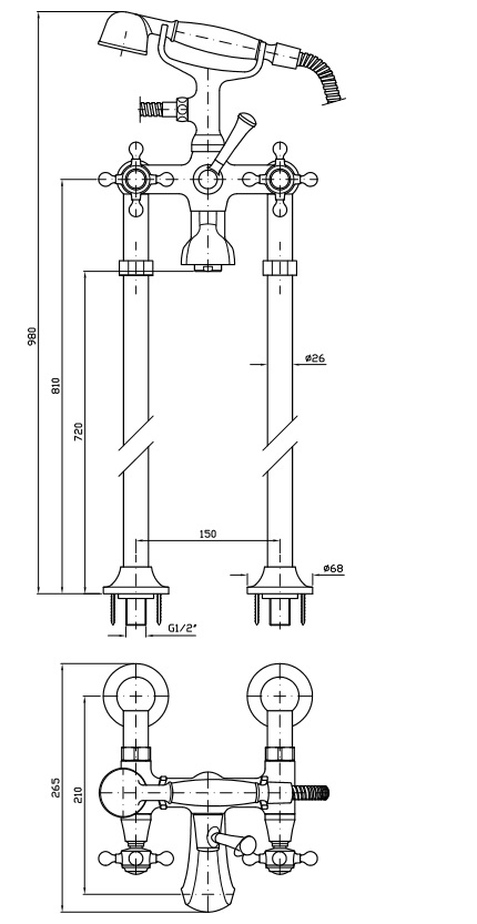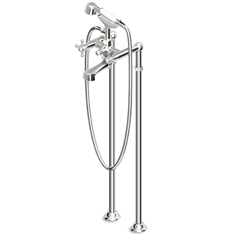 Bateria wannowo - natryskowa wolnostojąca z przełącznikiem, zestawem prysznicowym i kolumnami.