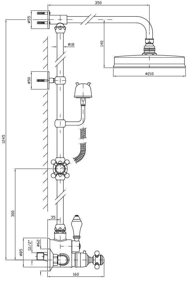 Kolumna natryskowa z baterią naścienną, głowicą natryskową mosiężną oraz słuchawką Z9472P.C.