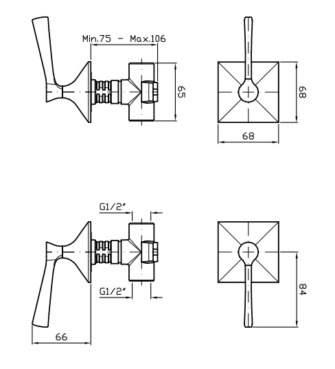 Bateria natryskowa podtynkowa, zawory Zimna/Ciepła