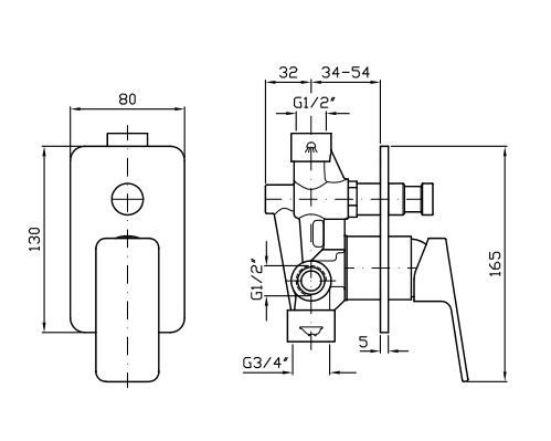 Jednouchwytowa bateria wannowo-natryskowa podtynkowa z przełącznikiem.