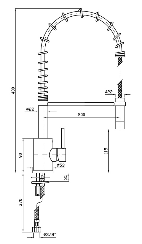 Jednouchwytowa bateria zlewozmywakowa z wylewką obrotową, perlator, wężyki elastyczne.