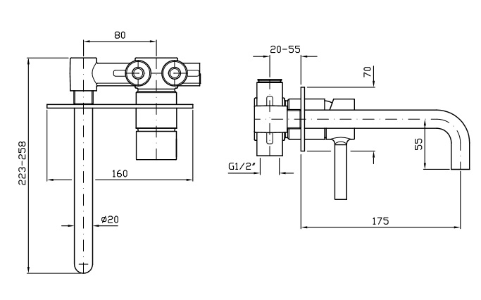2-otworowa, jednouchwytowa bateria umywalkowa podtynkowa z perlatorem.Popularne w Strefie Luksusu