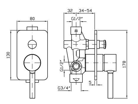Jednouchwytowa bateria wannowo-natryskowa podtynkowa z przełącznikiem.