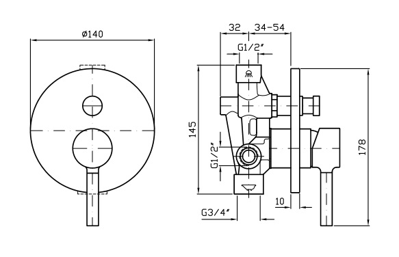 Jednouchwytowa bateria wannowo-natryskowa podtynkowa z przełącznikiem