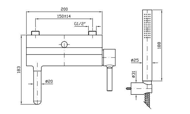 Rozstaw przyłączy: 150±14 mm