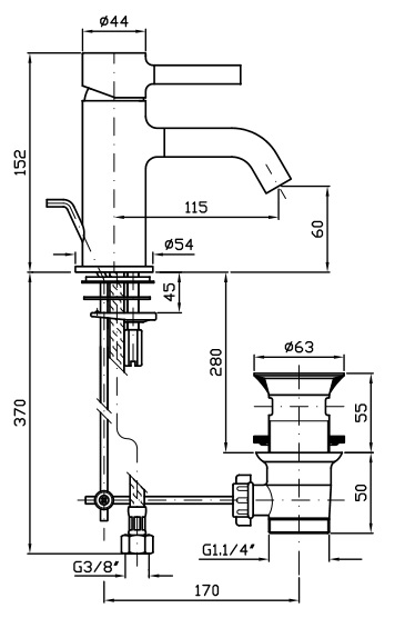 Zucchetti Pan Bateria Umywalkowa Jednouchwytowa z korkiem chrom ZP6211