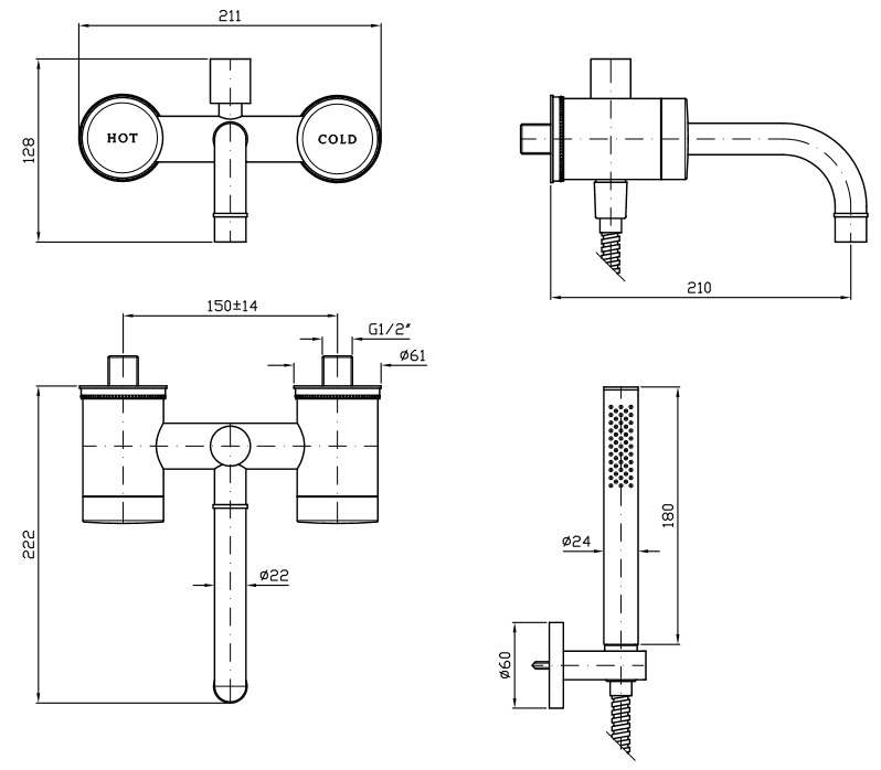 Zucchetti Savoir Bateria Wannowo-natryskowa naścienna chrom ZSA226.CC