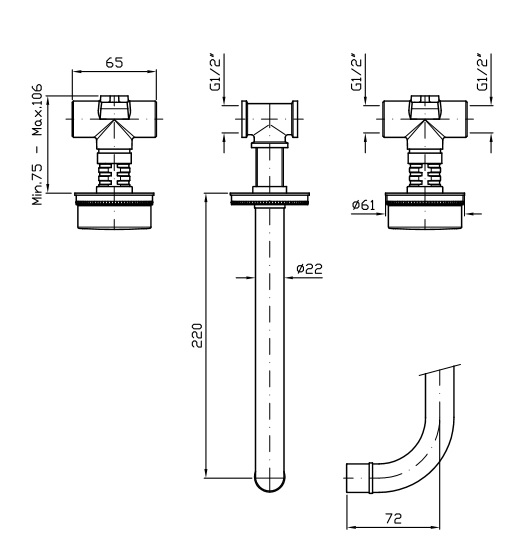 Zucchetti Savoir Bateria Umywalkowa 3-otworowa Podtynkowa elementy zewnętrzne chrom ZSA670.CC
