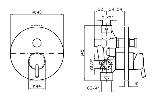 Jednouchwytowa bateria wannowo-natryskowa podtynkowa z przełącznikiem