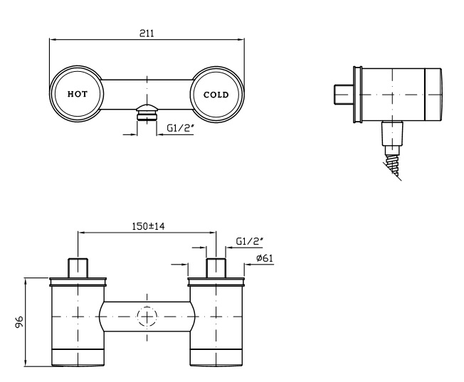 Rozstaw przyłączy: 150±14 mm