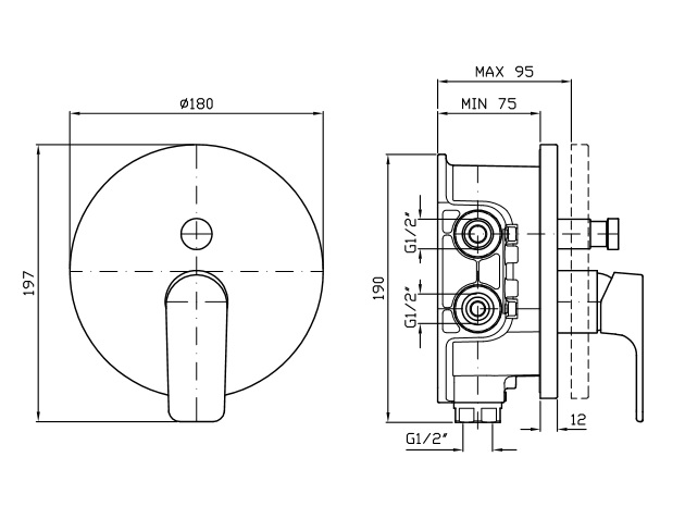 Zucchetti Wind Bateria Wannowo-natryskowa Jednouchwytowa Podtynkowa element zewnętrzny chrom ZWN096