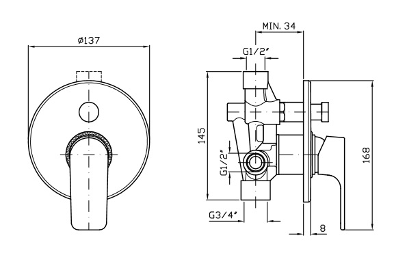 Jednouchwytowa bateria wannowo-natryskowa podtynkowa z przełącznikiem.