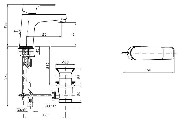Długość wylewki: 115 mm