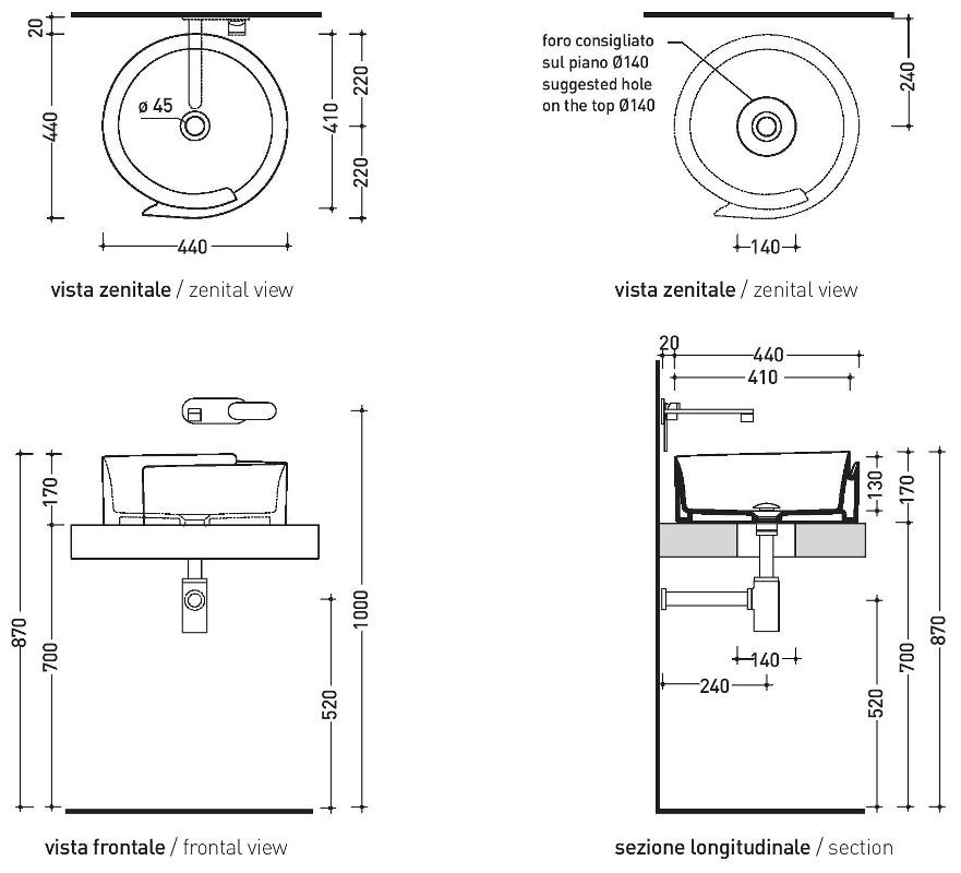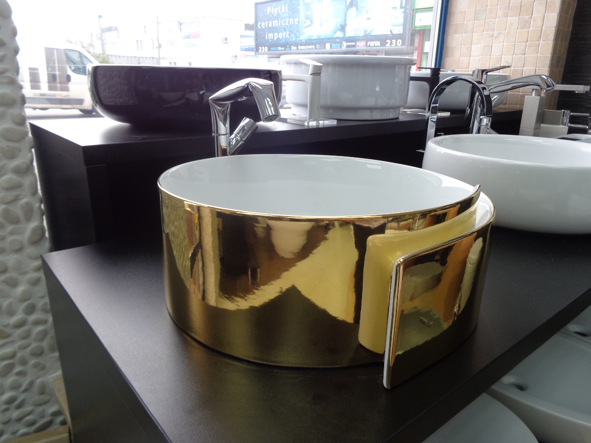 Flaminia Roll Umywalka stawiana na blat 44cm biała/złota RL44LOR