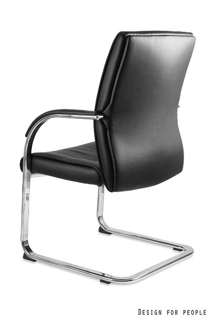 - Siedzisko i oparcie pokryte wysokiej jakości czarną eko-skórą