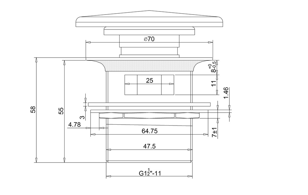 Korek wannowy z korkiem Click-Clack do wanien z przelewem z pokrywą wykonaną z materiału NaturalStone.