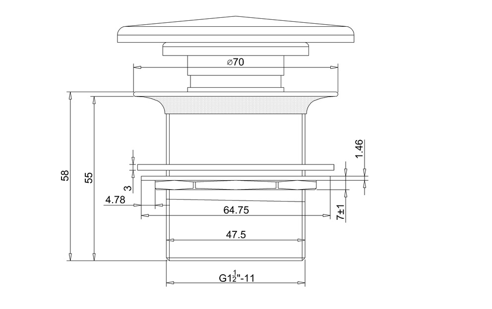 Odpływ wannowy z korkiem Click-Clack do wanien bez przelewu z pokrywą wykonaną z materiału NaturalStone.