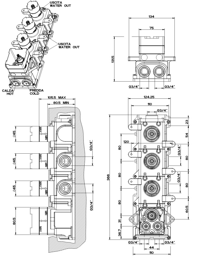 Gessi Element Montażowy Podtynkowy chrom 43105.031 / 43105031