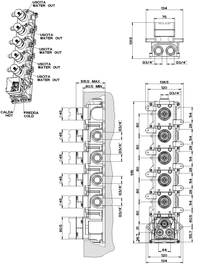 Gessi Element Montażowy Podtynkowy chrom 43109.031 / 43109031